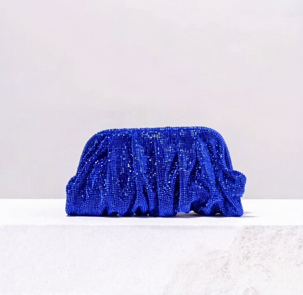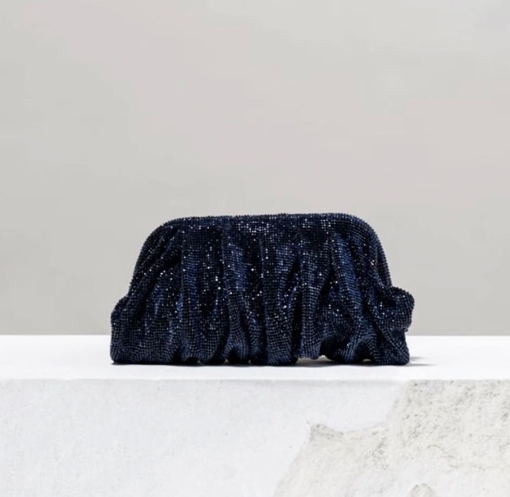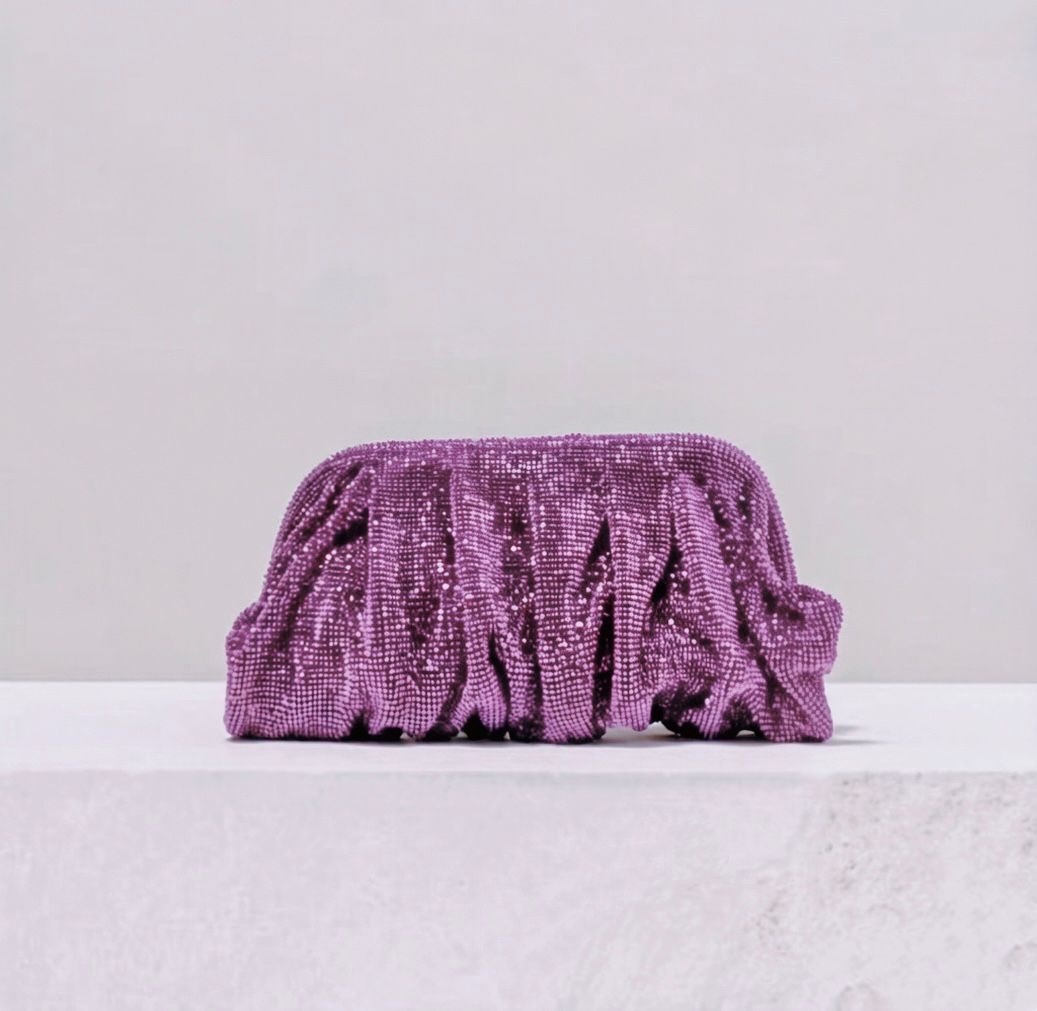 كلاتش (حقيبة يد صغيرة) من تصميم Alexander Wang (ألكسندر وانغ). تتميز الحقيبة بتصميم خارجي مغطى بالخرز أو الفصوص اللامعة التي تمنحها مظهراً براقاً للمناسبات المسائية.