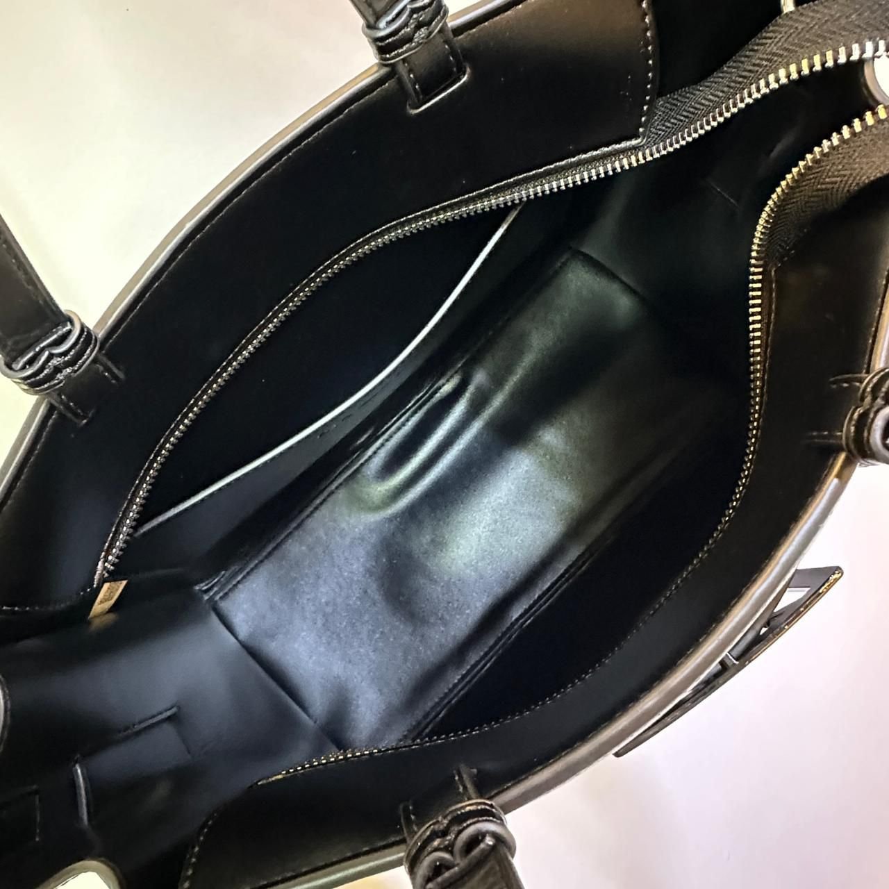 - التصميم: حقيبة يد كبيرة الحجم تتميز بحلية معدنية بارزة لشعار الماركة (AX) في المنتصف.
