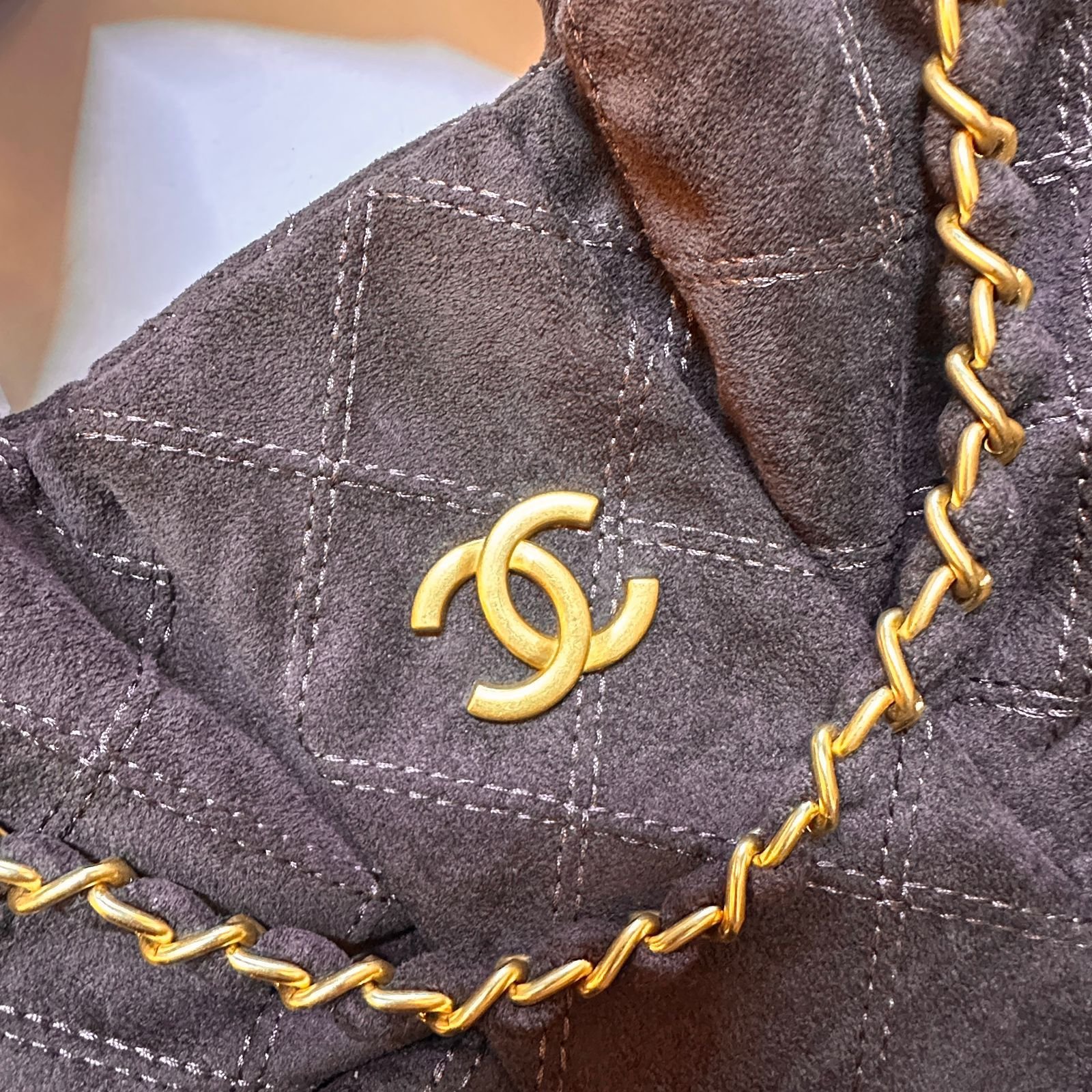 • التصميم: شكل فيونكة كبيرة الحجم مع نمط مبطن (Diamond Lattice) وشعار شانيل الشهير (CC) في المنتصف.