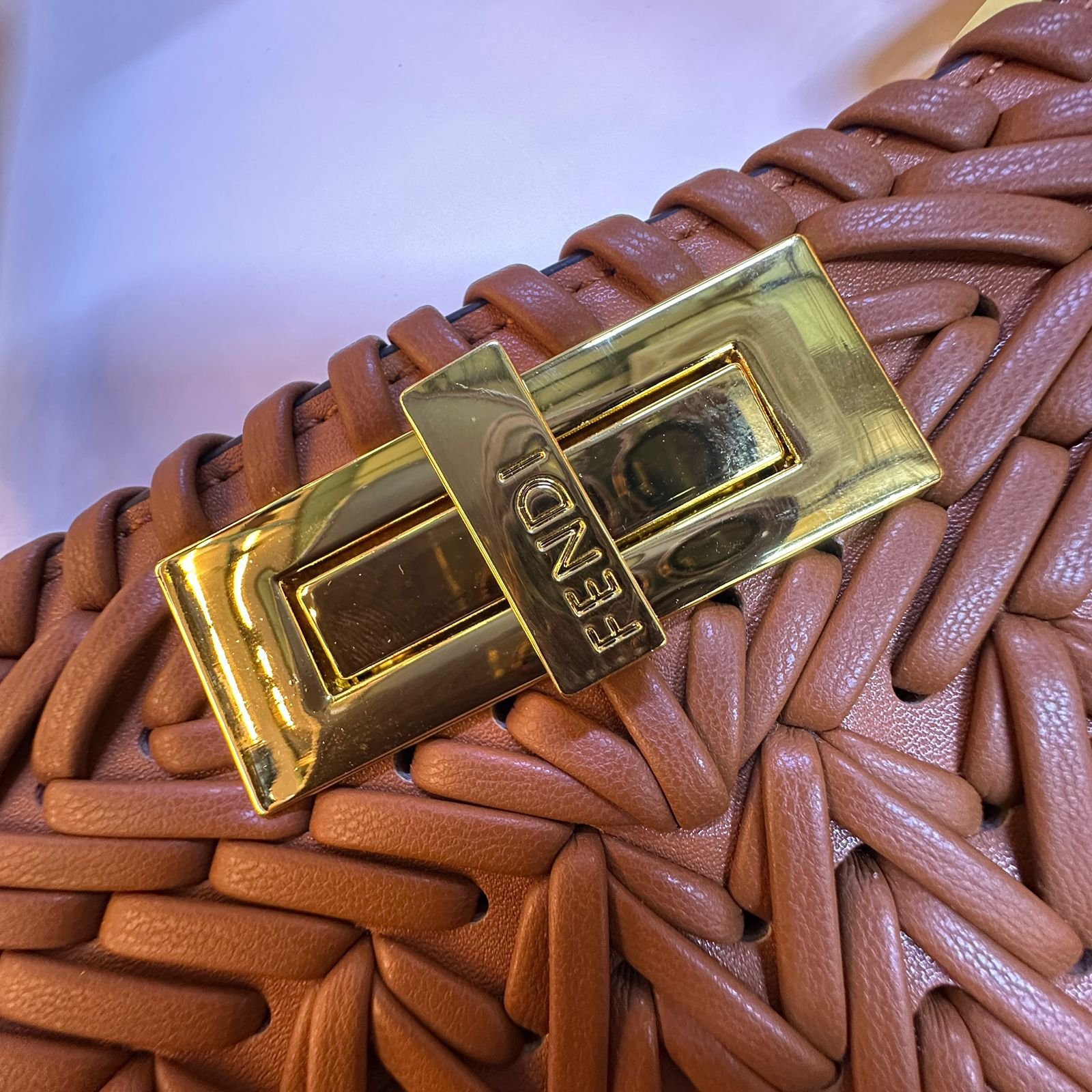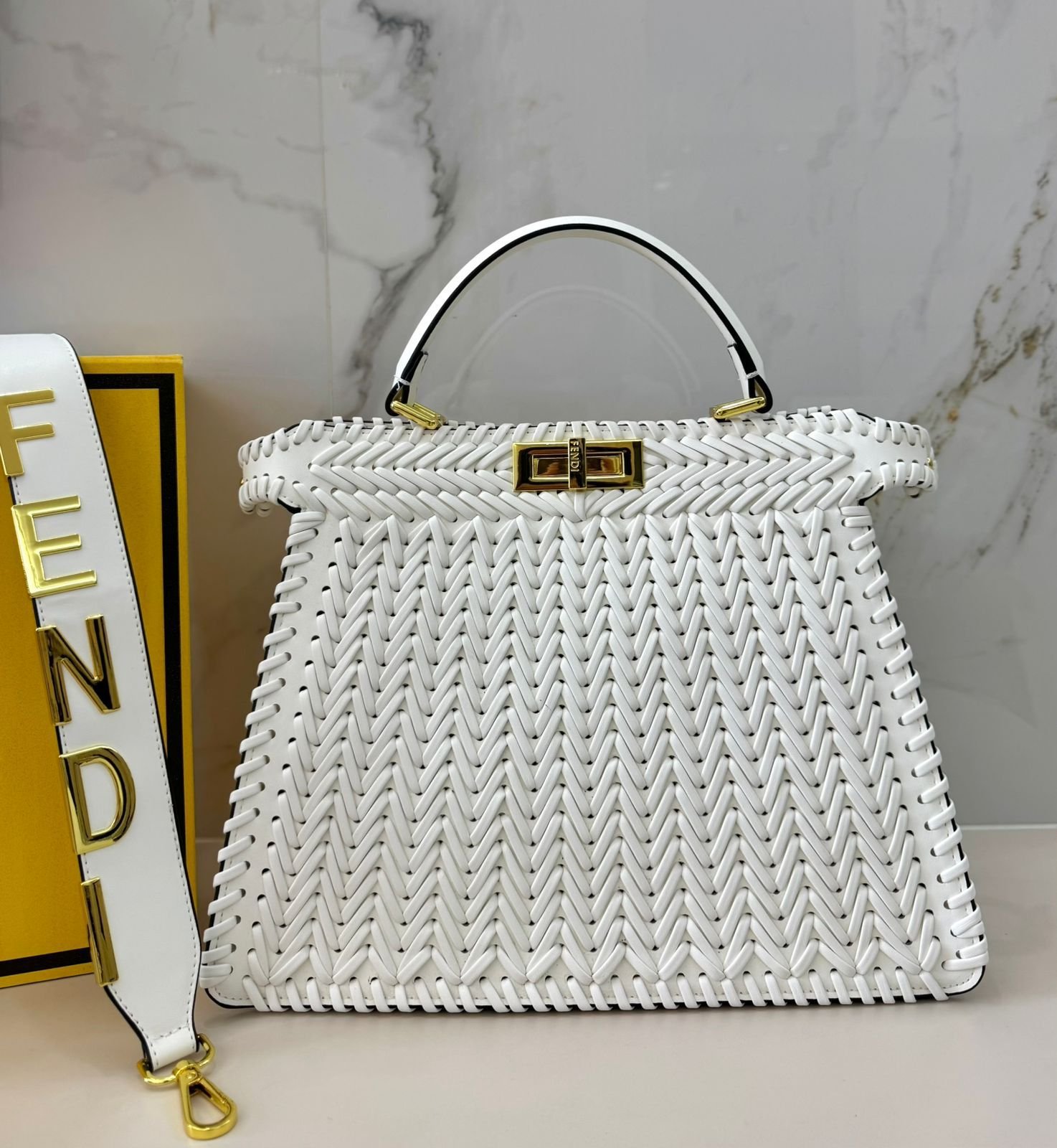 مجموعة من حقائب Fendi Peekaboo ISeeU التي تتميز بتصميم كلاسيكي أيقوني مع لمسة عصرية من خلال الجلد المنسوج أو المجدول يدوياً. تعتبر هذه الحقيبة رمزاً للإبداع والحرفية لدى دار فندي (Fendi)، وقد صُممت لأول مرة في عام 2009.