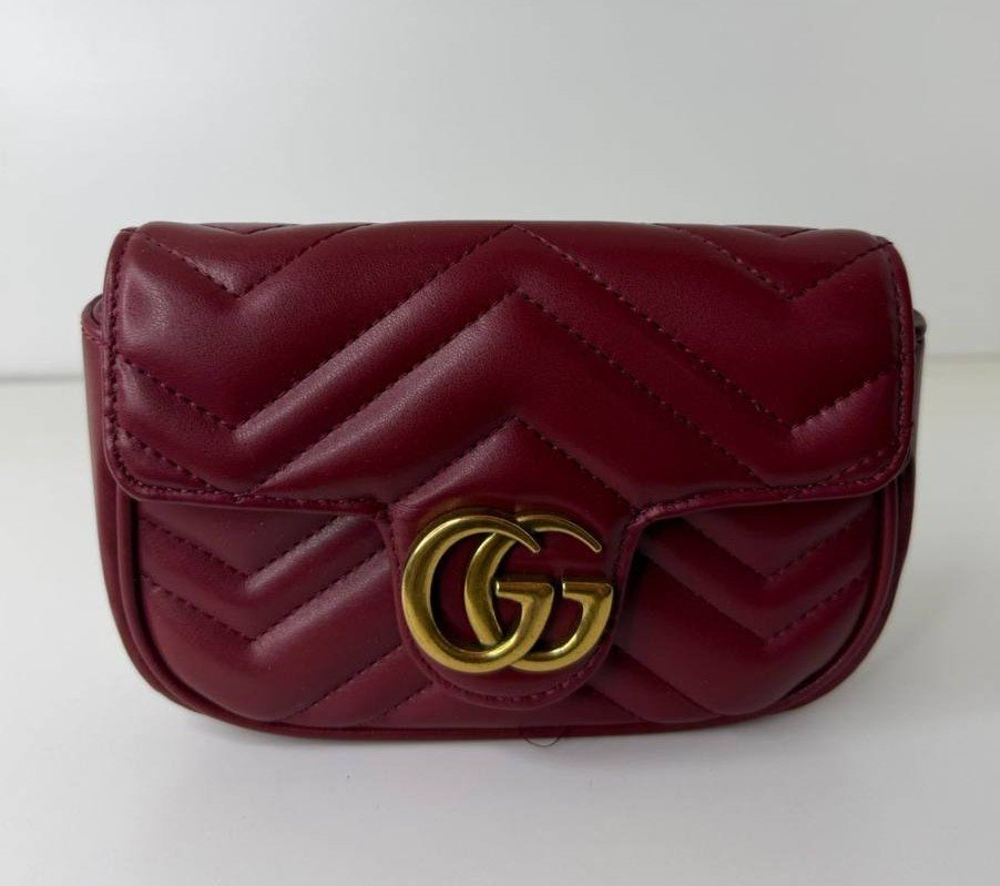 حقيبة GG Marmont من العلامة التجارية الفاخرة غوتشي (Gucci)، وتحديداً بتصميم الماتيلاسيه (Matelassé) المصنوع من الجلد المبطن بنمط “شيفرون” المتعرج.