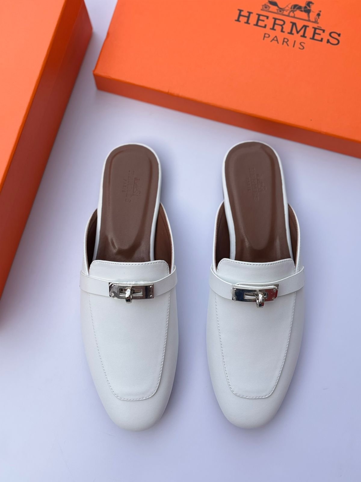 حذاء Oz mule من العلامة التجارية الفاخرة هيرميس (Hermès). يتميز هذا الحذاء بتصميمه الكلاسيكي والأنيق، وهو مصنوع من جلد الماعز (goatskin) ويأتي مزوداً بإبزيم “كيلي” (Kelly buckle) الشهير والمطلي بالبالاديوم.