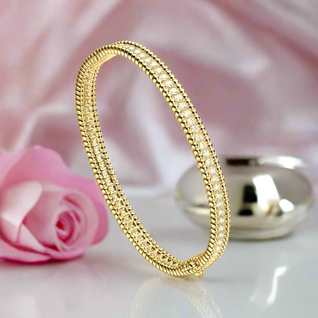 - سوار بيرلي دايموندز (صف واحد): سوار رفيع مصنوع من الإكسسوار المطلي ذهبي مرصع بصف من الزركون في المنتصف.